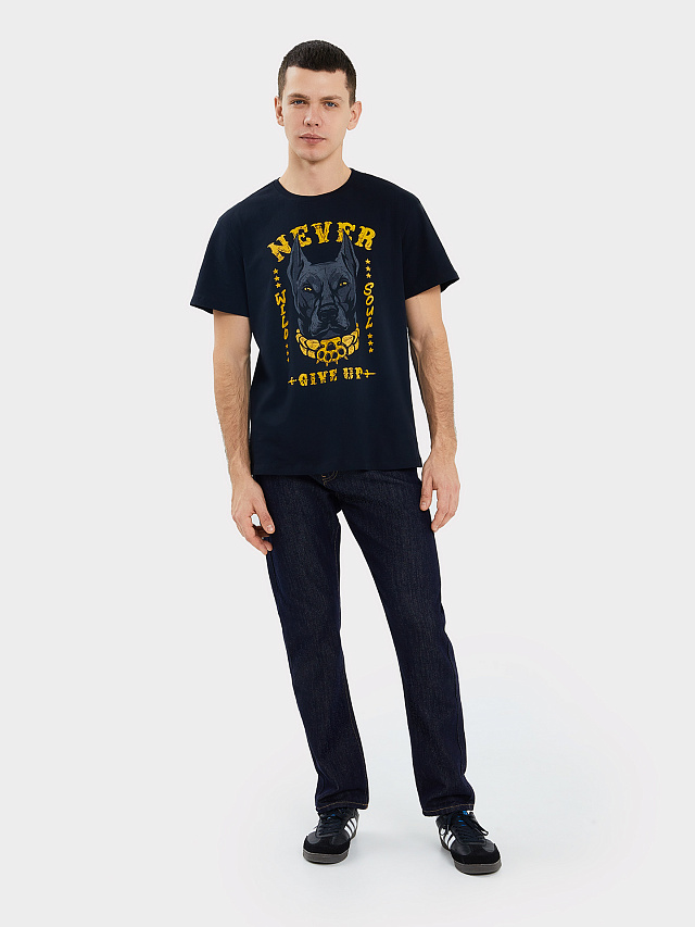 Футболка из трикотажной кулирки c печатью в виде надписи "Never give up". Полотно полностью состоит из натурального хлопка. Изделие свободного силуэта со слегка спущенным плечом, длиной до линии бедер. Горловина круглой формы. Рукава втачные, короткие. Базовая модель, которая отлично впишется в повседневный образ. Такая футболка мужская оверсайз оптимальна для носки в любое время года. Она является универсальной и будет прекрасно сочетаться со многими вещами в вашем гардеробе. В линейке широкая размерная сетка, есть разные цвета. Стильная и практичная. Рекомендуем!