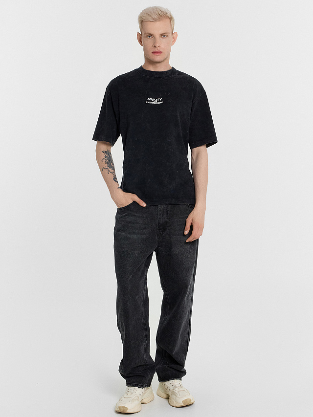 Футболка мужская черная с принтом и надписью "ability exists everywhere"