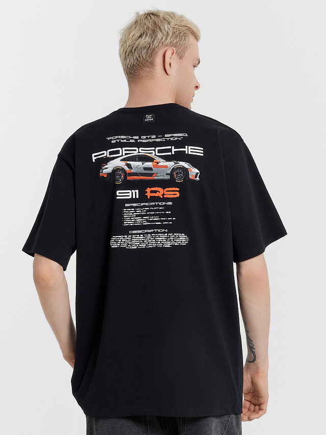 Футболка мужская черная с принтом и надписью Porsche