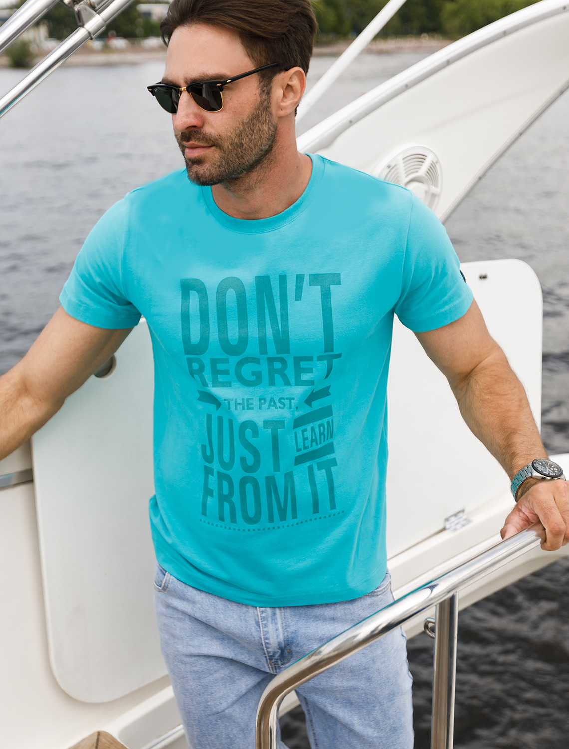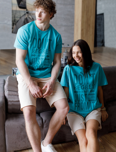 Футболка мужская цвета морской волны с принтом