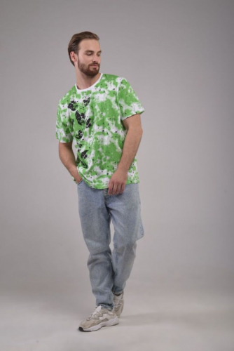 Мужская футболка свободного кроя, оверсайз, классической длины, спортивная, нарядная, 100% хлопок 170 г/м2 с прикольным стильным принтом, выполненным в технологии water print (вотер принт) - нанесение рисунка безопасными сертифицированными красителями на водной основе, что позволяет изделию оставаться мягким, тонким и эластичным, долго сохранять яркость. Дерзкий яркий дизайн принта - выбор современного уверенного в себе мужчины. Модель - размер одежды L(50-52) 182-104-94, футболка на модели в размере XL