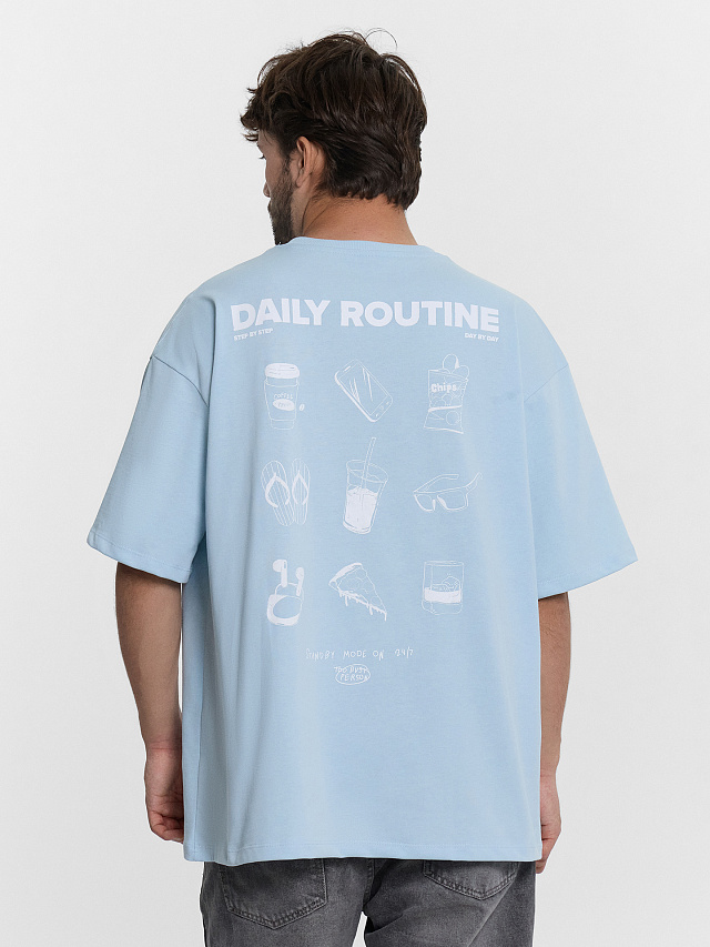 Футболка мужская голубая с принтом и надписью "daily routine"