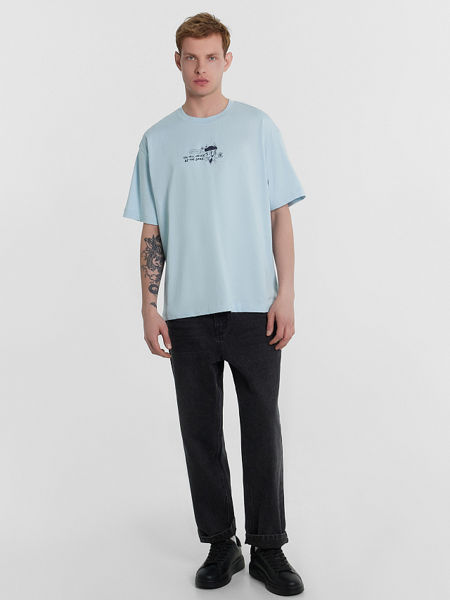 Футболка мужская голубая с принтом и надписью "You will never be the same "