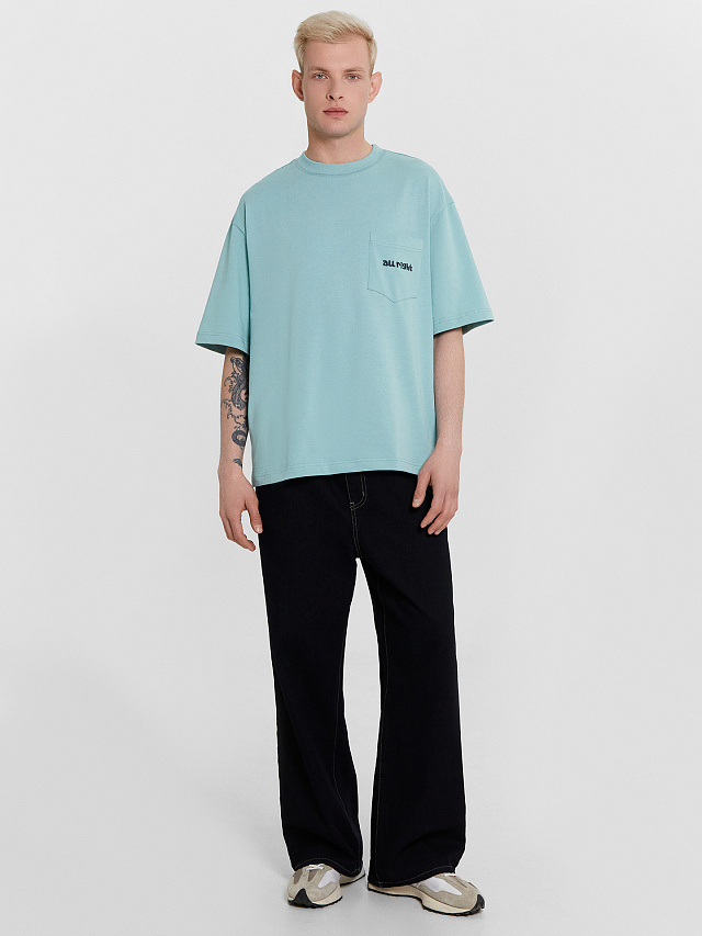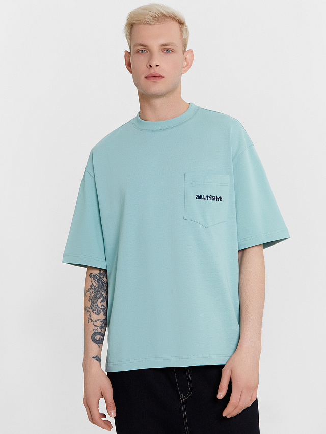 Футболка мужская голубая с вышивкой "all right"