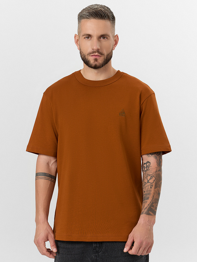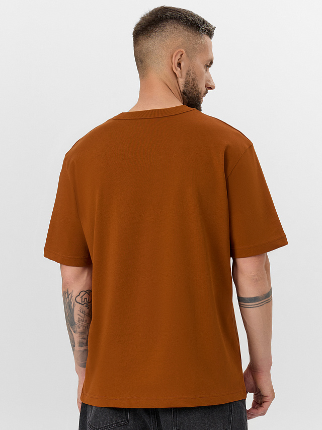 Насыщенный коричневый цвет делает футболку универсальной: она легко сочетается с джинсам