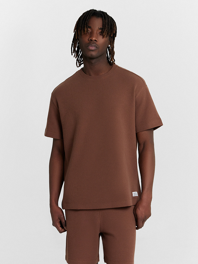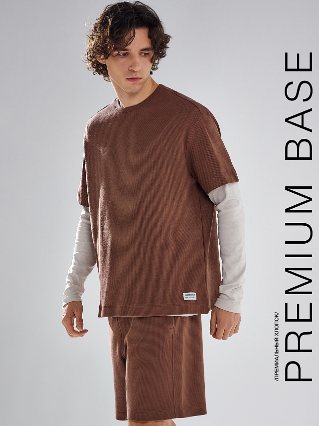 Эта мужская футболка из коллекции Premium Basic — универсальная и стильная модель, которая станет основой современного гардероба. Прямой крой делает её удобной и непринужденной, а круглая горловина подчеркивает классический стиль, обеспечивая гармоничное сочетание традиции и актуальности. Спущенное плечо придает футболке современный акцент, создавая расслабленный образ. Короткие рукава гарантируют свободу движений и комфорт, а нижний край, обработанный швом вподгибку, обеспечивает аккуратность и долговечность изделия. Футболка выполнена из хлопкового материала с вафельной текстурой, что делает её особенно приятной на ощупь, мягкой и воздухопроницаемой. Это отличный выбор для теплого сезона, а также для создания стильного повседневного образа. Советуем добавить эту модель в гардероб!