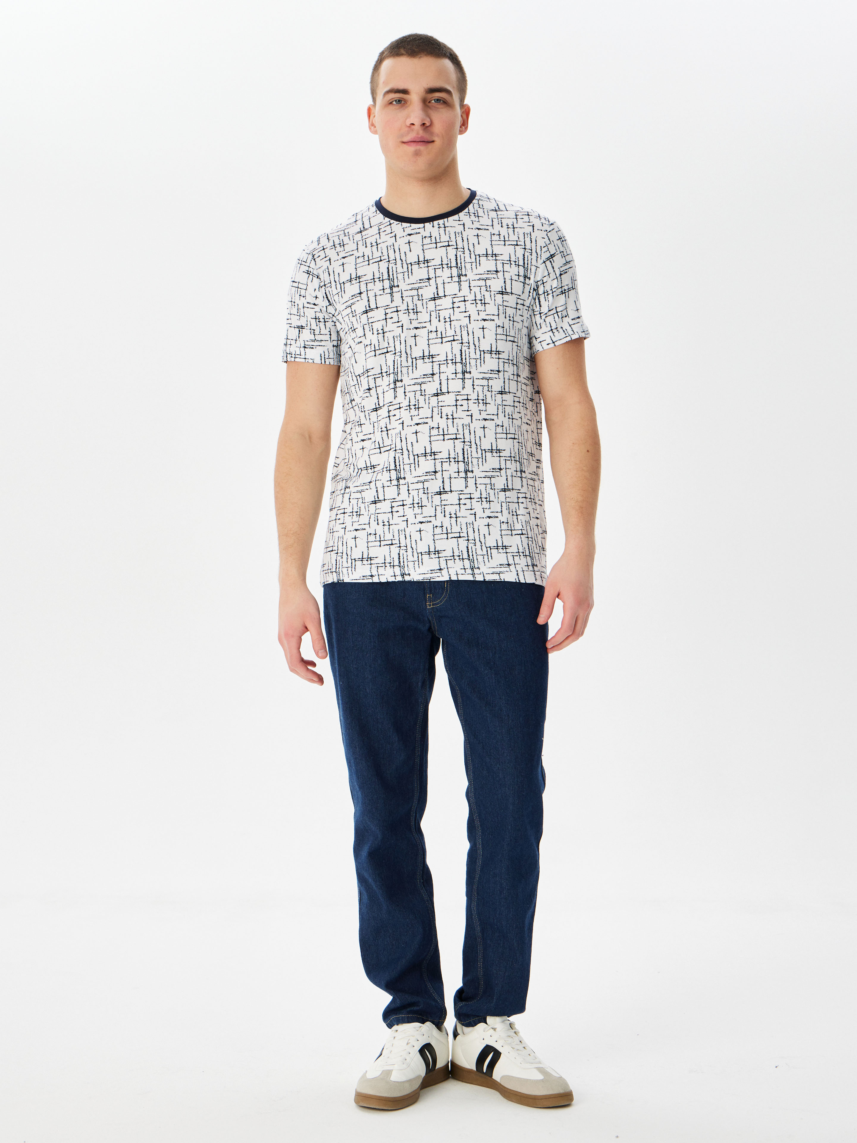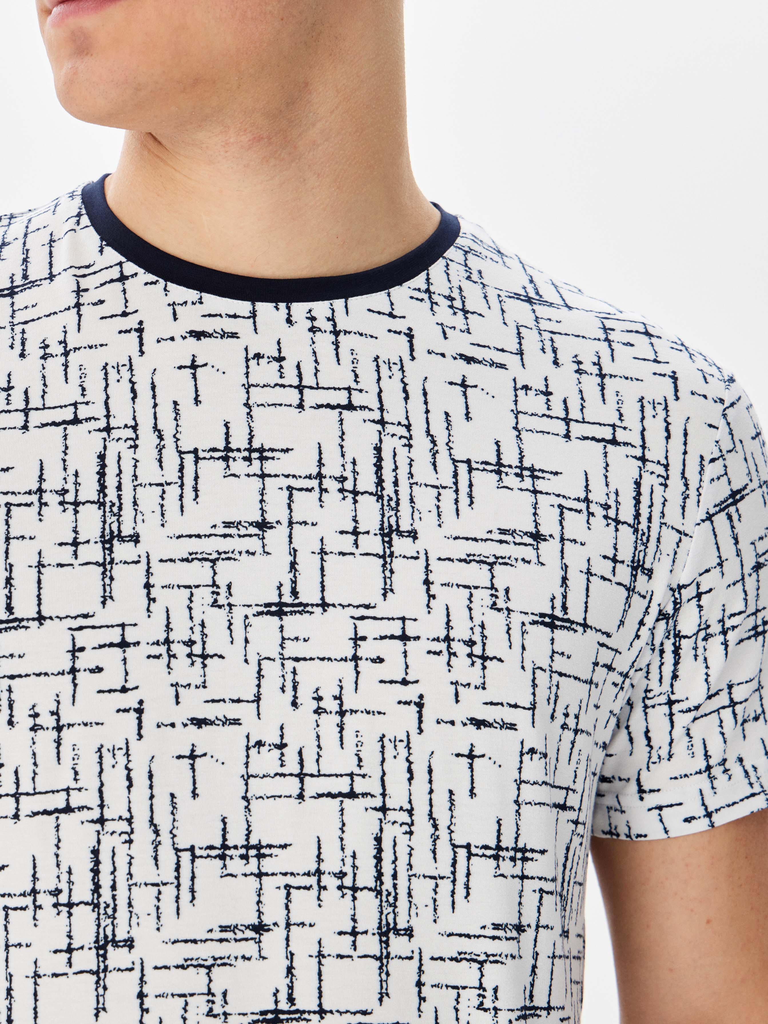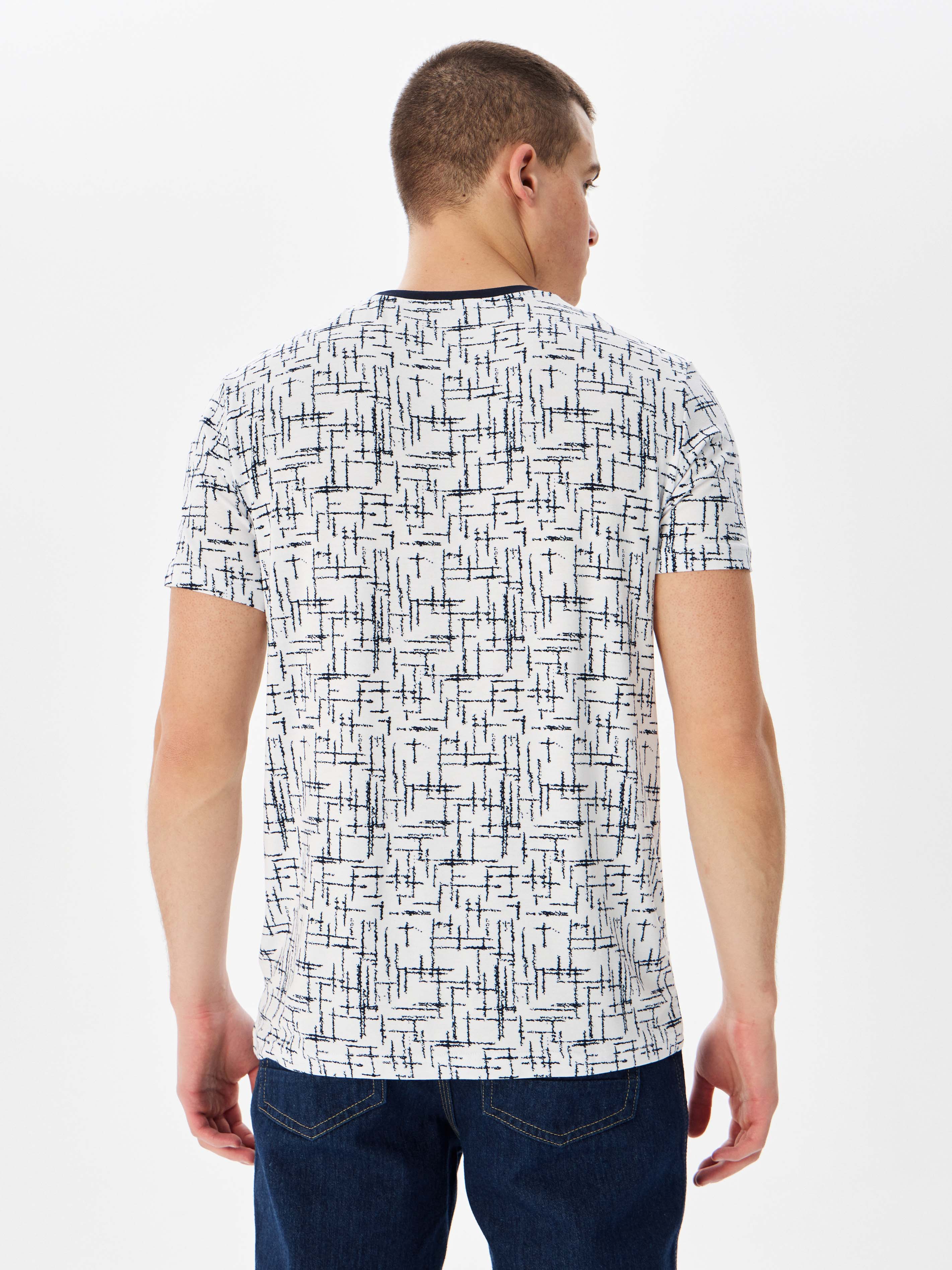 Цвет: Белый Рисунок: Абстрактный<..показать/li> Состав: 95% вискоза 5% эластан Модель: Классическая Ворот: Круглый Караман: отсутствует Силуэт: Прямой силуэт / Сlassic fit/li>