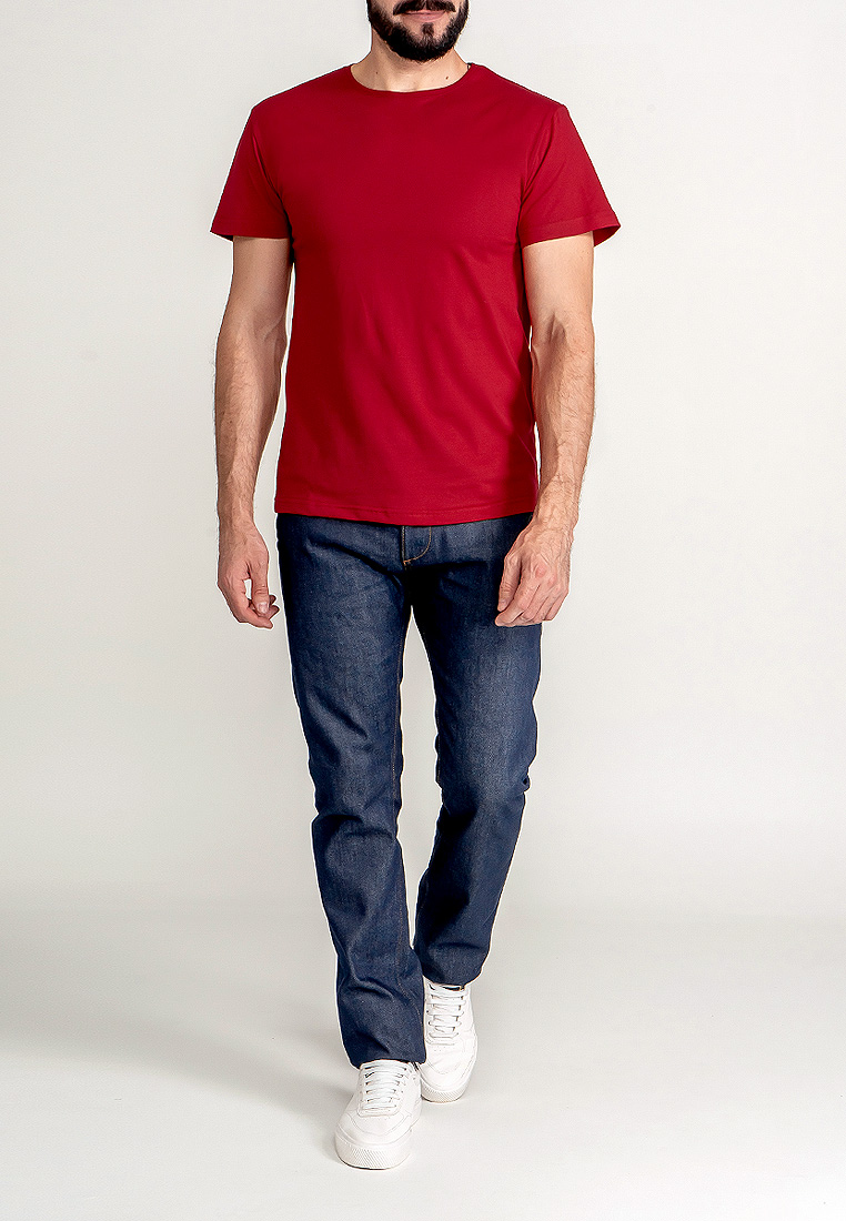 Цвет: Красный Рисунок: Трикотаж о..показатьднотонный Состав: 100% хлопок Supreme Модель: Классическая Ворот: Круглый Силуэт: Прямой силуэт / Сlassic fitднотонный
