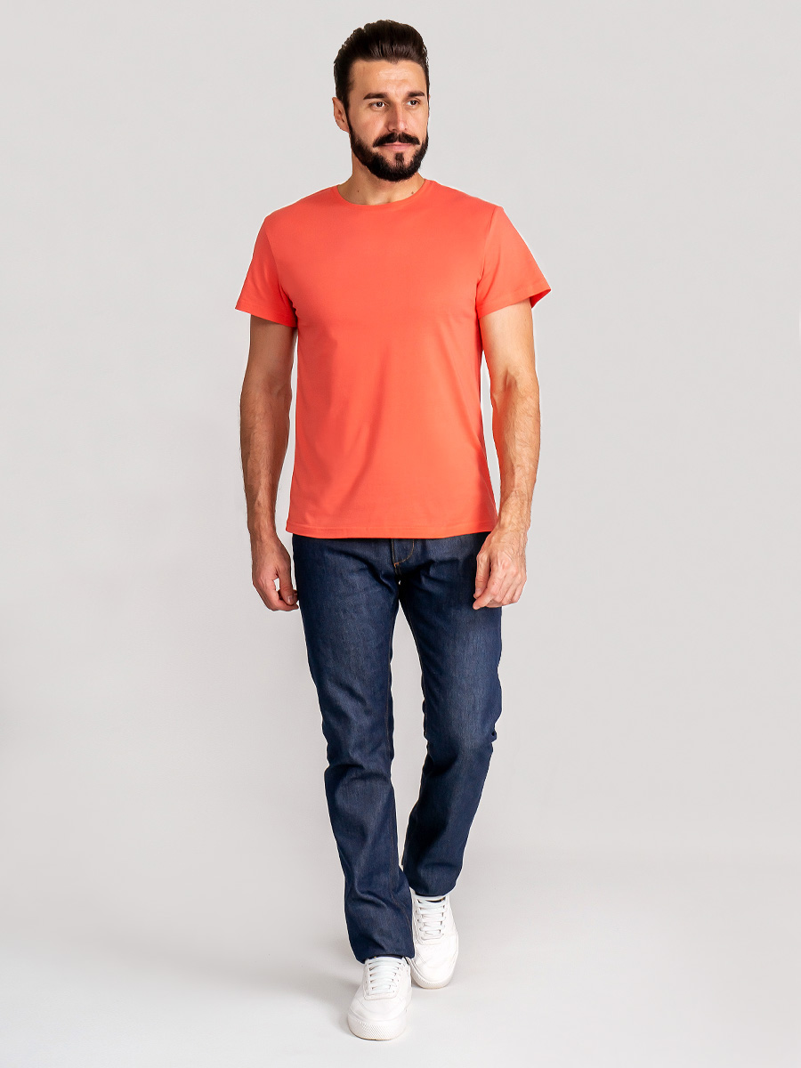 Цвет: Оранжевый Рисунок: Трикотаж..показать однотонный Состав: 100% хлопок Supreme Модель: Классическая Ворот: Круглый Силуэт: Прямой силуэт / Сlassic fit однотонный