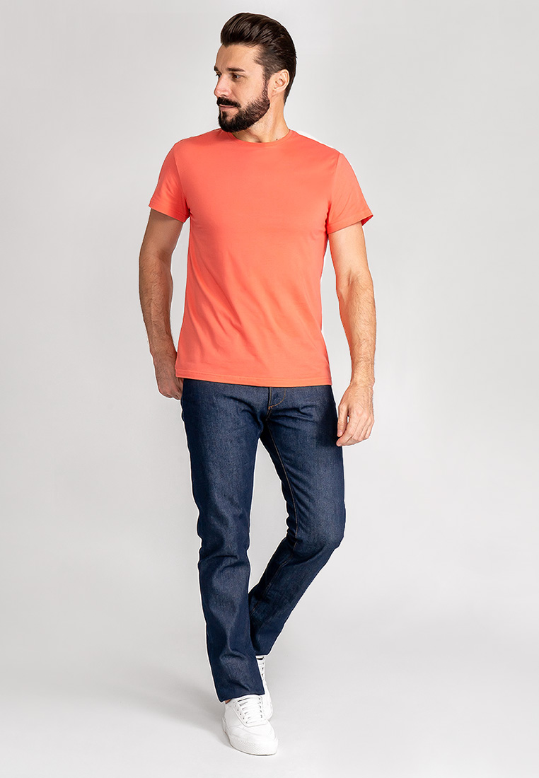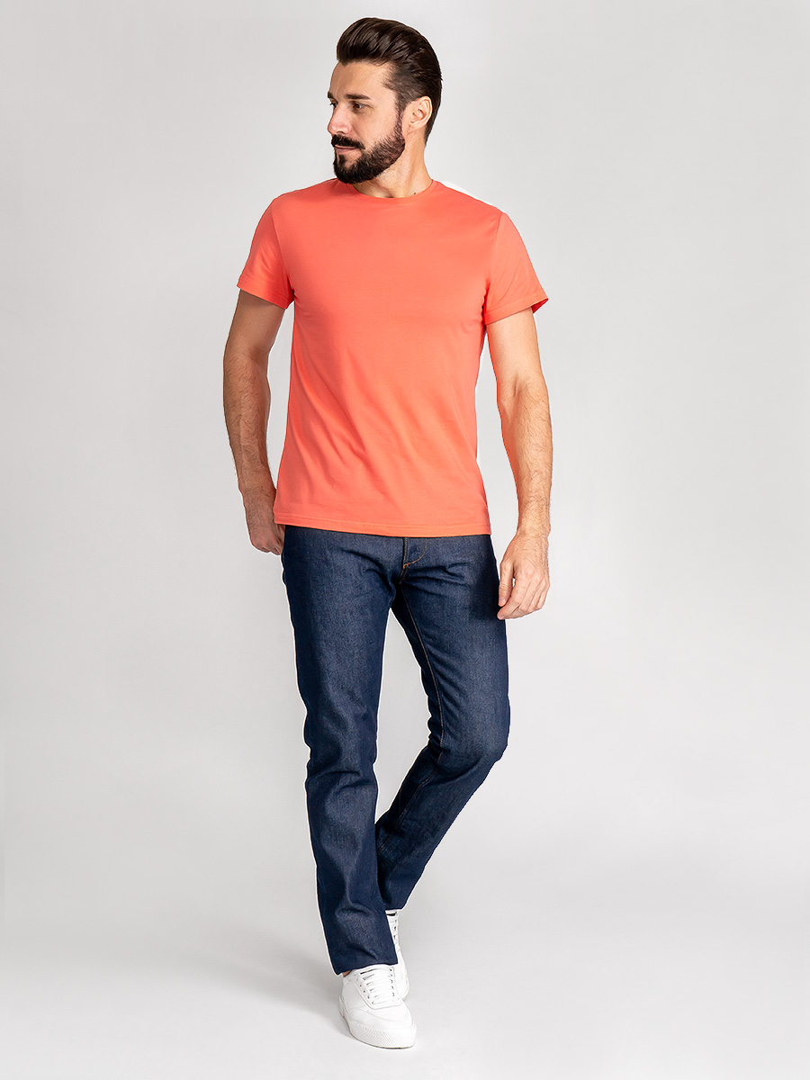 Цвет: Оранжевый Рисунок: Трикотаж..показать однотонный Состав: 100% хлопок Supreme Модель: Классическая Ворот: Круглый Силуэт: Прямой силуэт / Сlassic fit однотонный