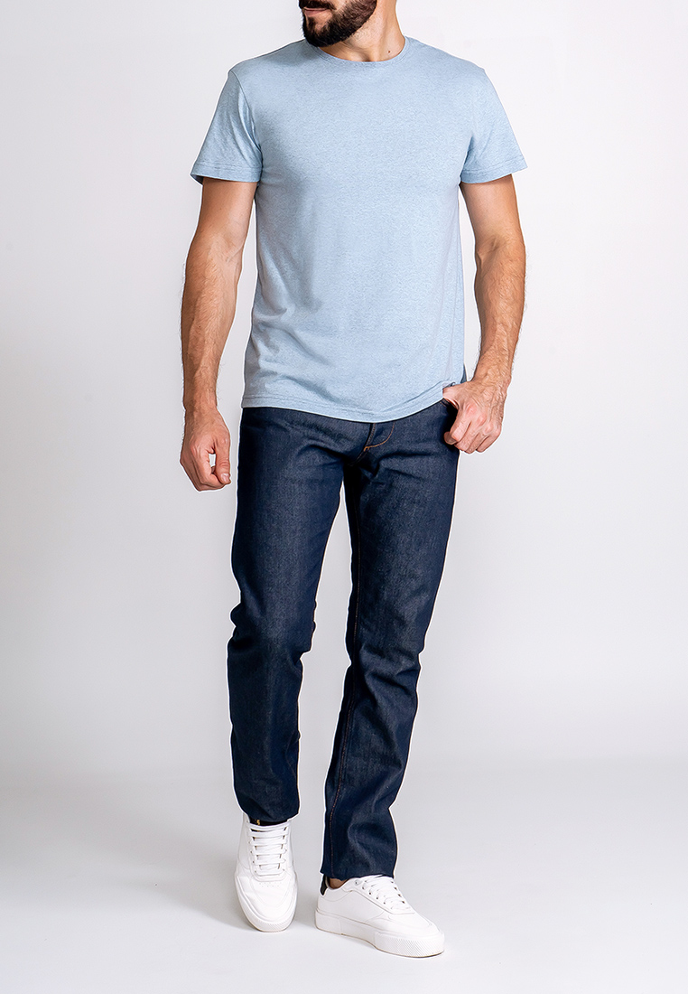 Цвет: Голубой Рисунок: Трикотаж о..показатьднотонный меланжевый Состав: 70% хлопок 30% полиэстер Модель: Классическая Ворот: Круглый Силуэт: Прямой силуэт / Сlassic fitднотонный меланжевый
