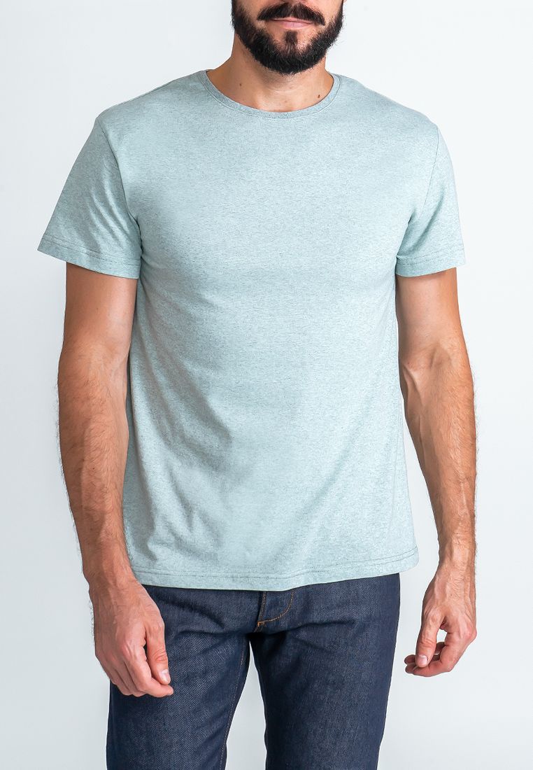 Цвет: Зеленый Рисунок: Трикотаж о..показатьднотонный меланжевый Состав: 70% хлопок 30% полиэстер Модель: Классическая Ворот: Круглый Силуэт: Прямой силуэт / Сlassic fitднотонный меланжевый