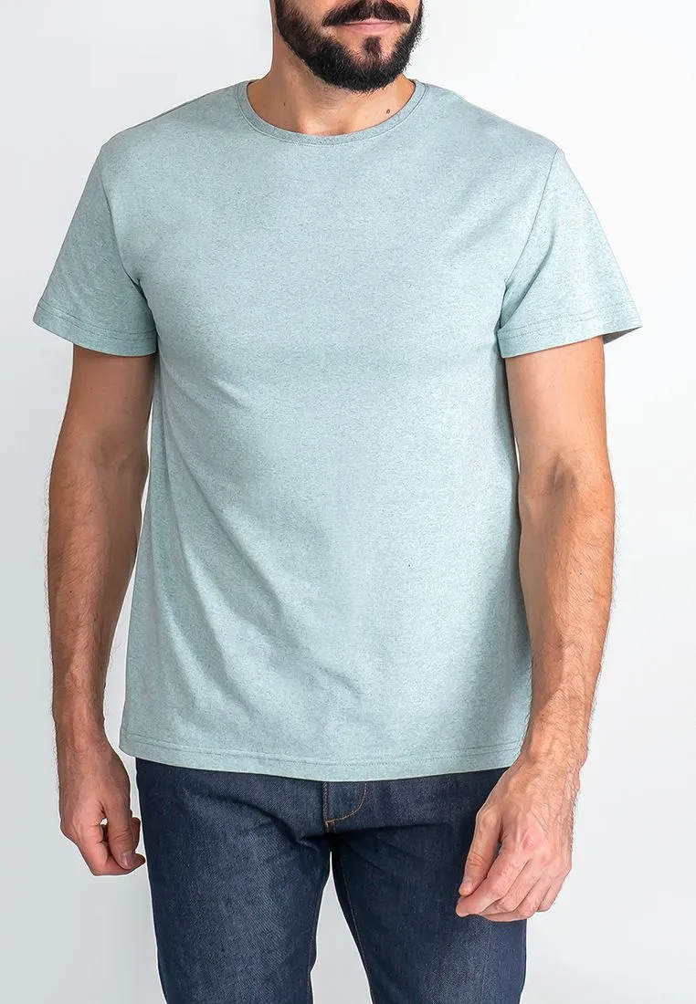 Цвет: Зеленый Рисунок: Трикотаж о..показатьднотонный меланжевый Состав: 70% хлопок 30% полиэстер Модель: Классическая Ворот: Круглый Силуэт: Прямой силуэт / Сlassic fitднотонный меланжевый
