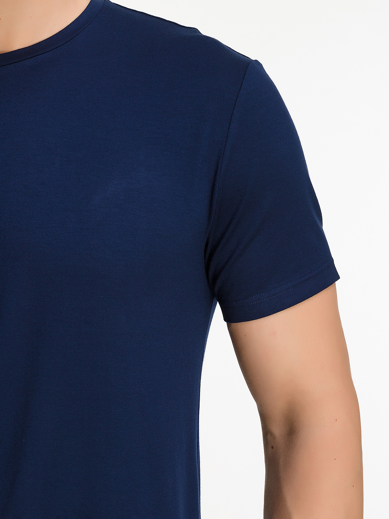 Цвет: Синий Рисунок: Трикотаж одн..показатьотонный Состав: 95% вискоза 5% лайкра Модель: Полуприлегающая Ворот: Круглый Силуэт: Полуприталенный силуэт / Regular fitотонный