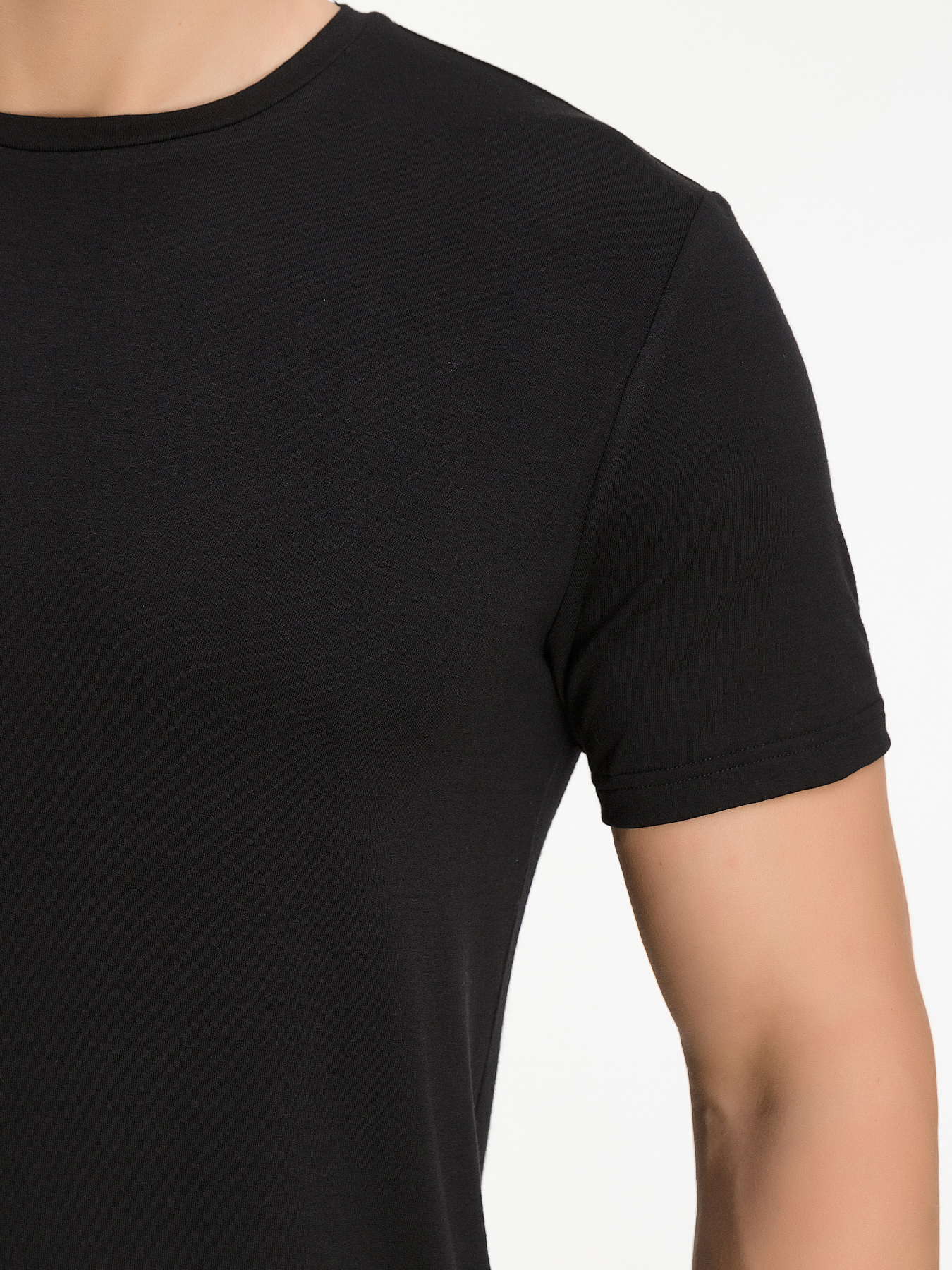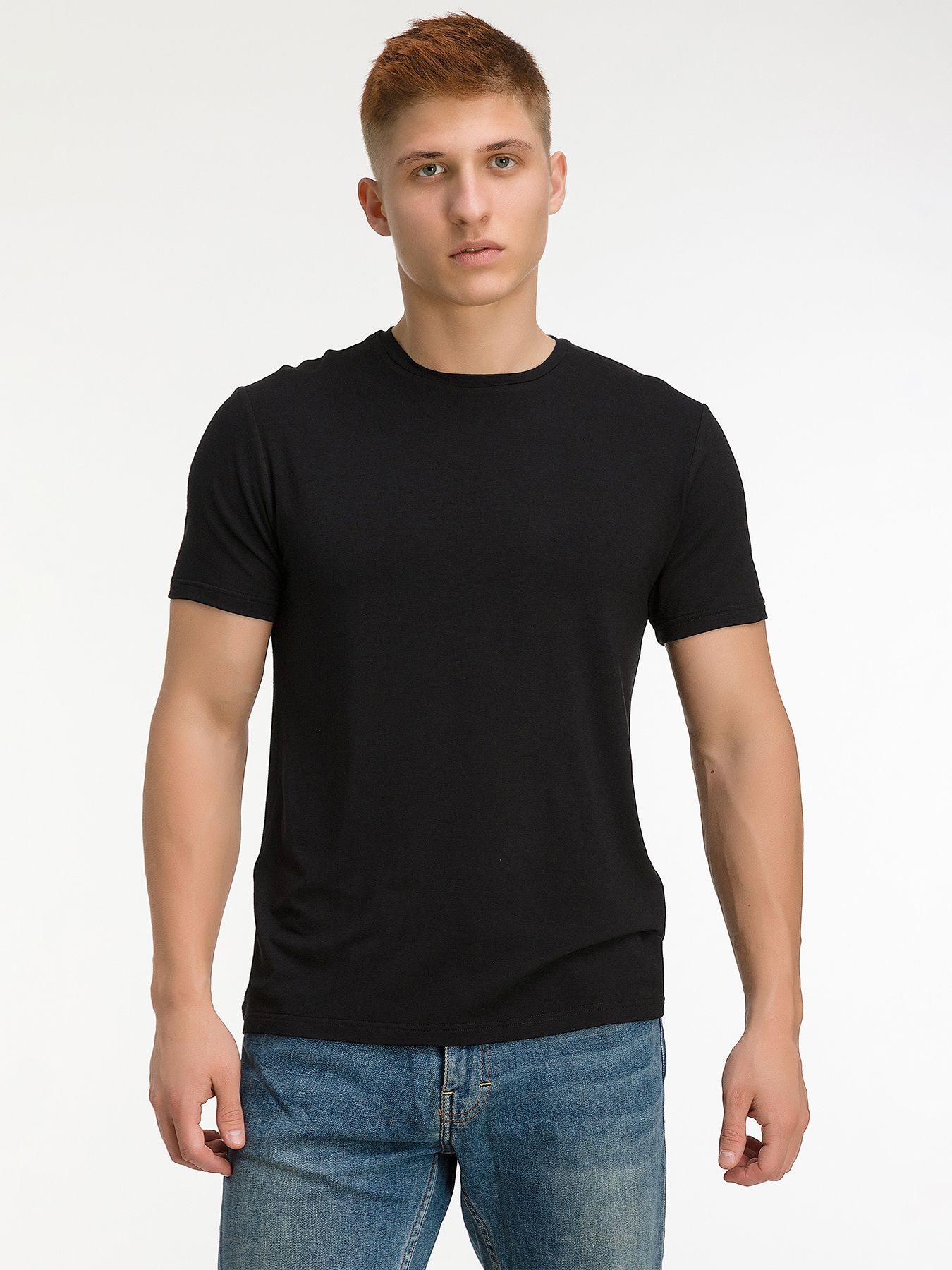 Цвет: Черный Рисунок: Трикотаж од..показатьнотонный Состав: 95% вискоза 5% лайкра Модель: Полуприлегающая Ворот: Круглый Силуэт: Полуприталенный силуэт / Regular fitнотонный