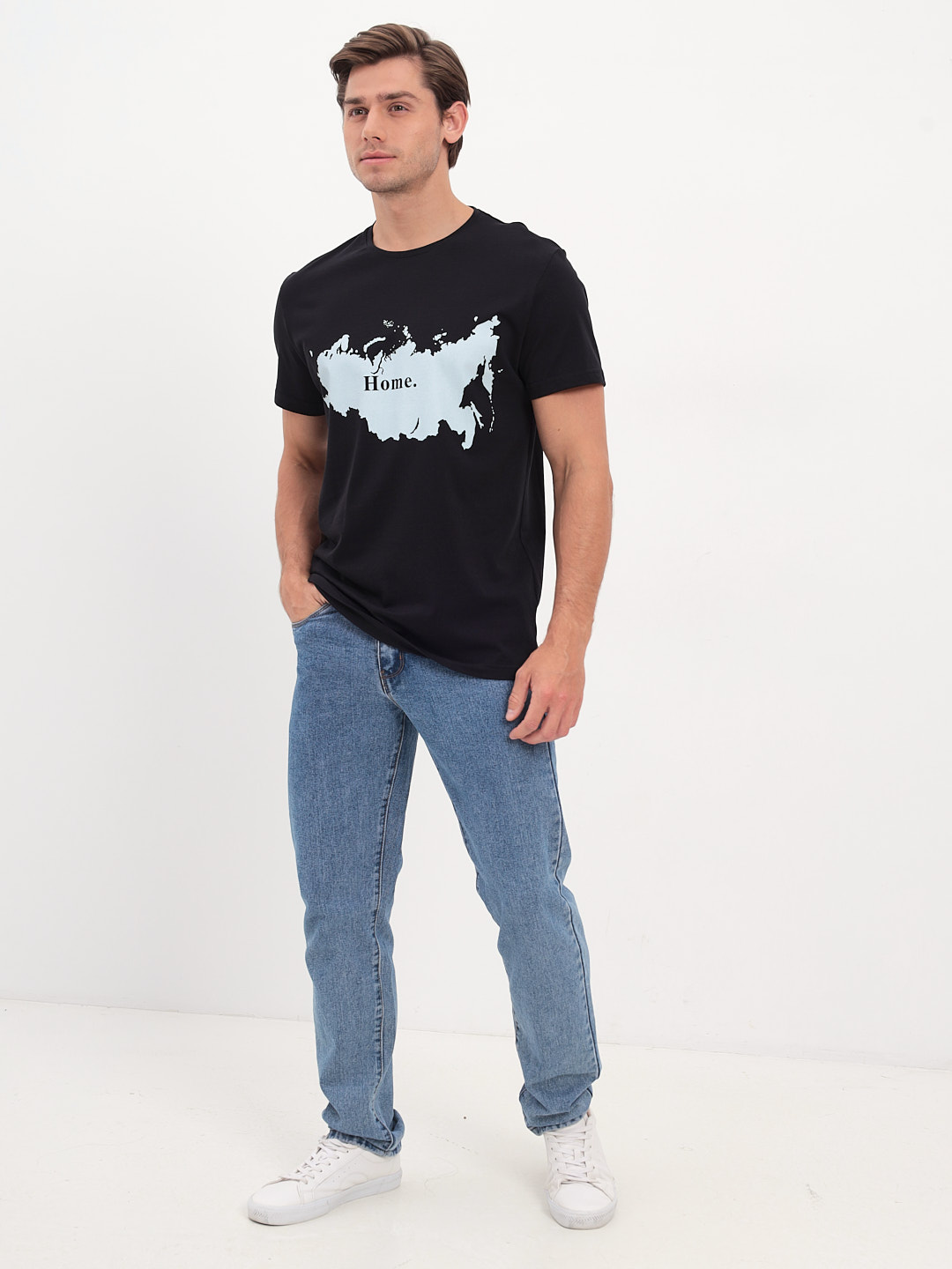 Цвет: Черный Рисунок: Принт ..показатьСостав: 95% хлопок 5% лайкра Модель: Классическая Ворот: Круглый Силуэт: Прямой силуэт / Сlassic fitСостав: 95% хлопок 5% лайкра Модель: Классическая Ворот: Круглый Силуэт: Прямой силуэт / Сlassic fit