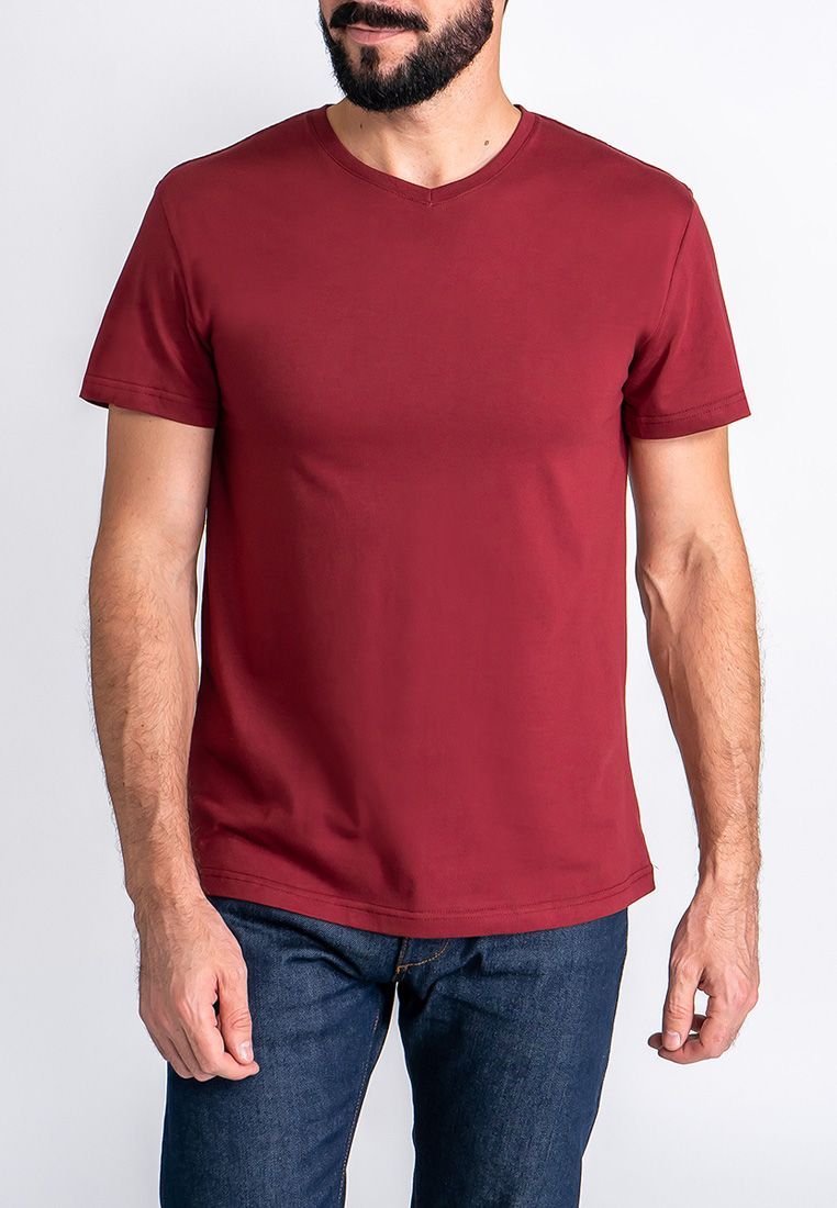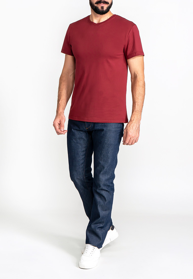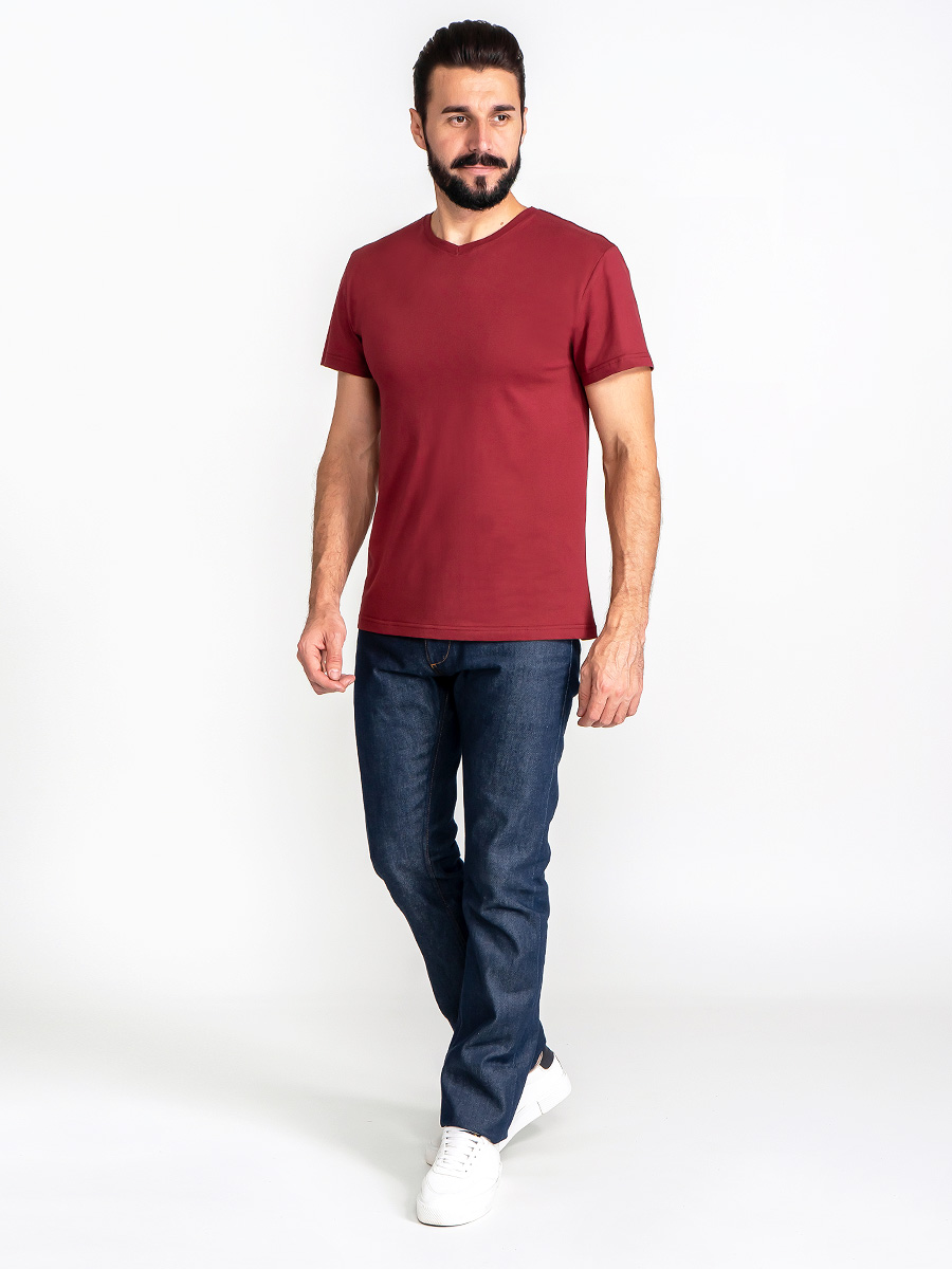 Цвет: Бордовый Рисунок: Трикотаж ..показатьоднотонный Состав: 100% хлопок Supreme Модель: Классическая Ворот: V-вырез Силуэт: Прямой силуэт / Сlassic fitоднотонный