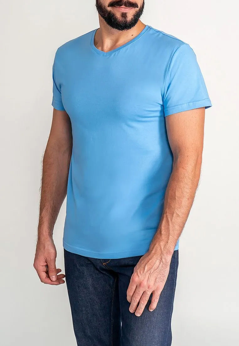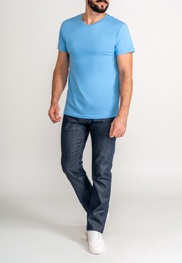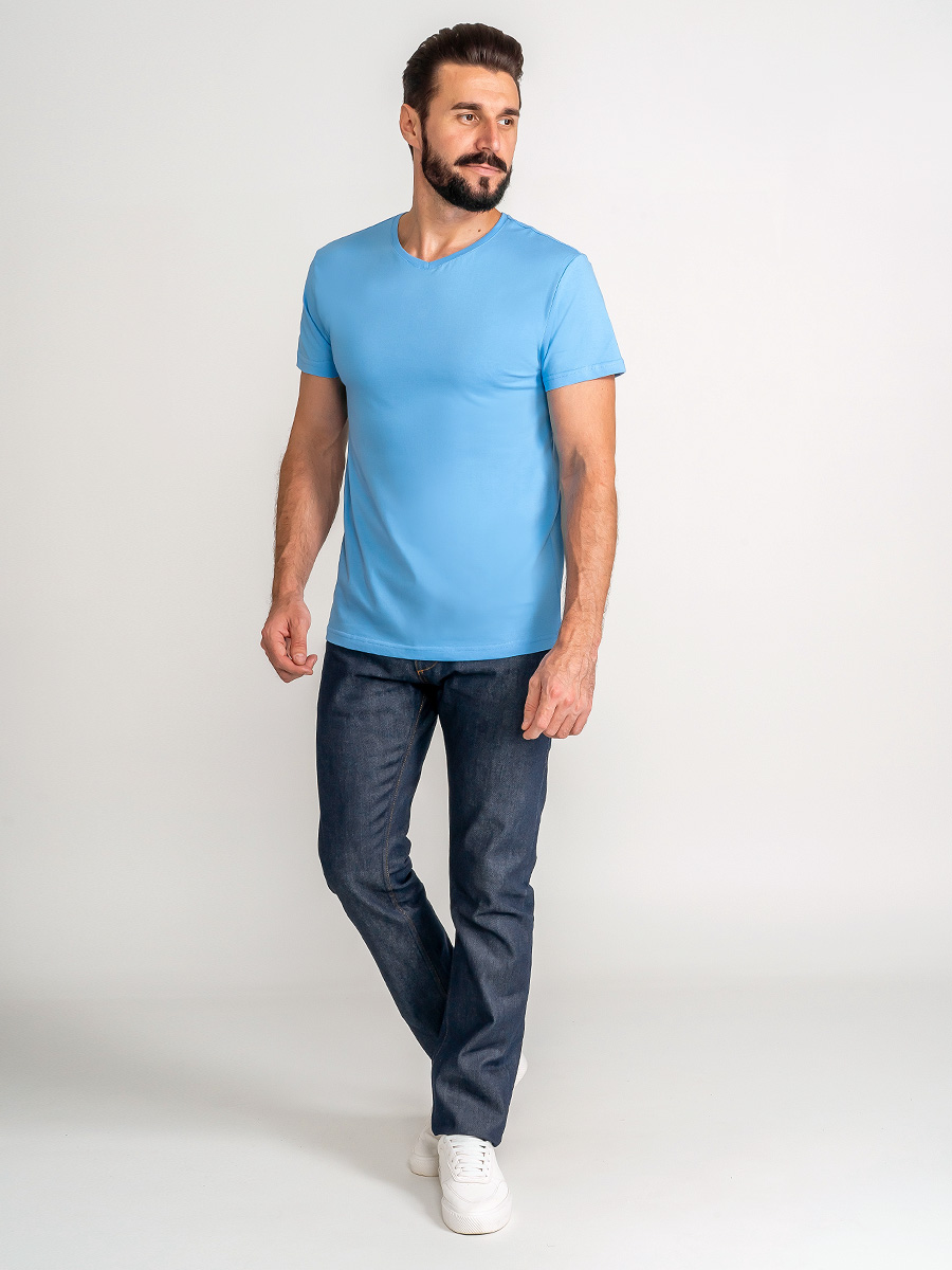 Цвет: Голубой Рисунок: Трикотаж о..показатьднотонный Состав: 100% хлопок Supreme Модель: Классическая Ворот: V-вырез Силуэт: Прямой силуэт / Сlassic fitднотонный
