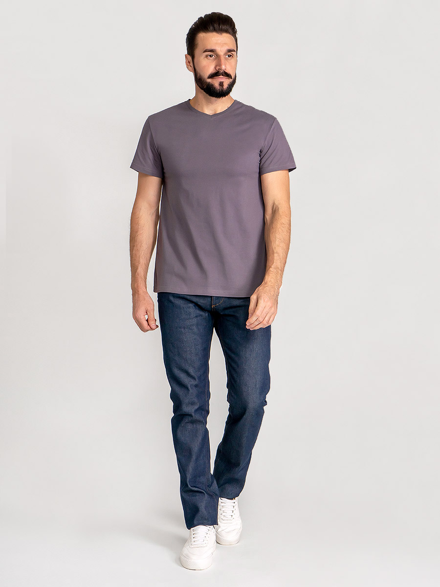 Цвет: Серый Рисунок: Трикотаж одн..показатьотонный Состав: 100% хлопок Supreme Модель: Классическая Ворот: V-вырез Силуэт: Прямой силуэт / Сlassic fitотонный