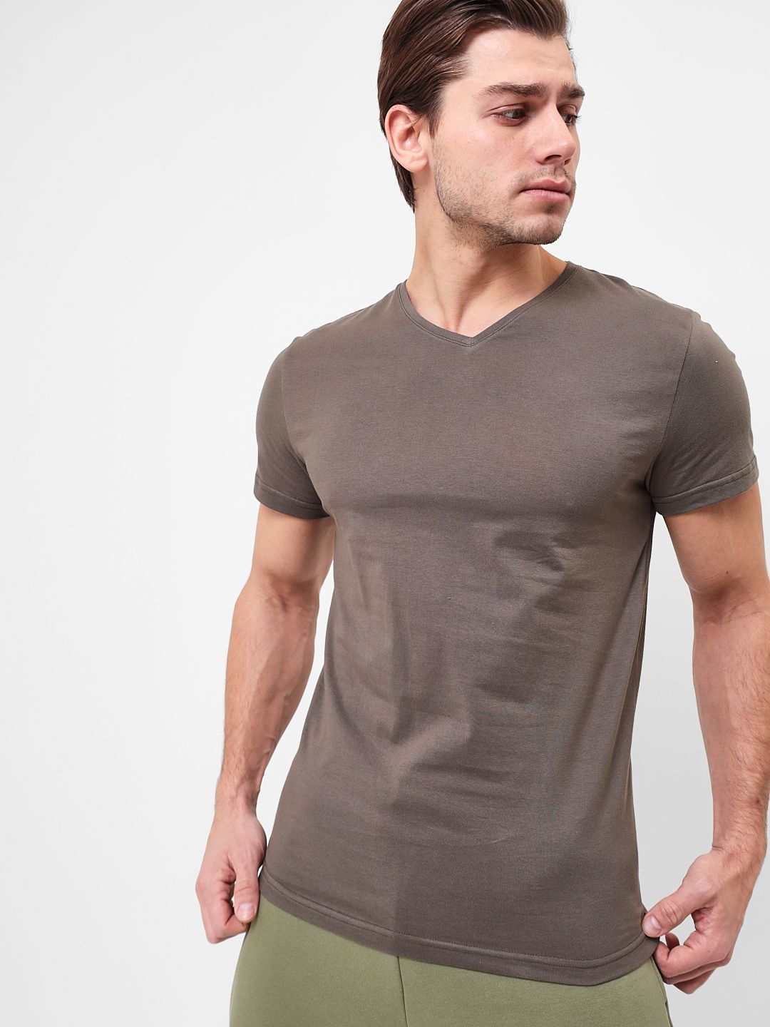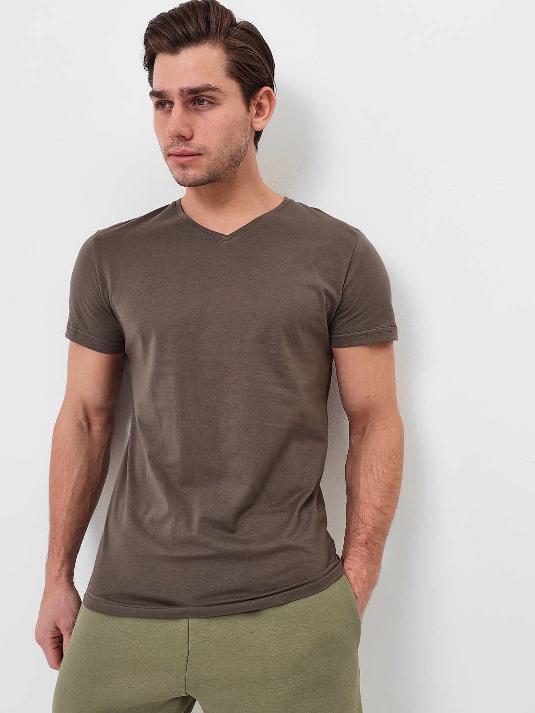 Цвет: Зеленый Рисунок: Трикотаж о..показатьднотонный Состав: 100% хлопок Supreme Модель: Классическая Ворот: V-вырез Силуэт: Прямой силуэт / Сlassic fitднотонный