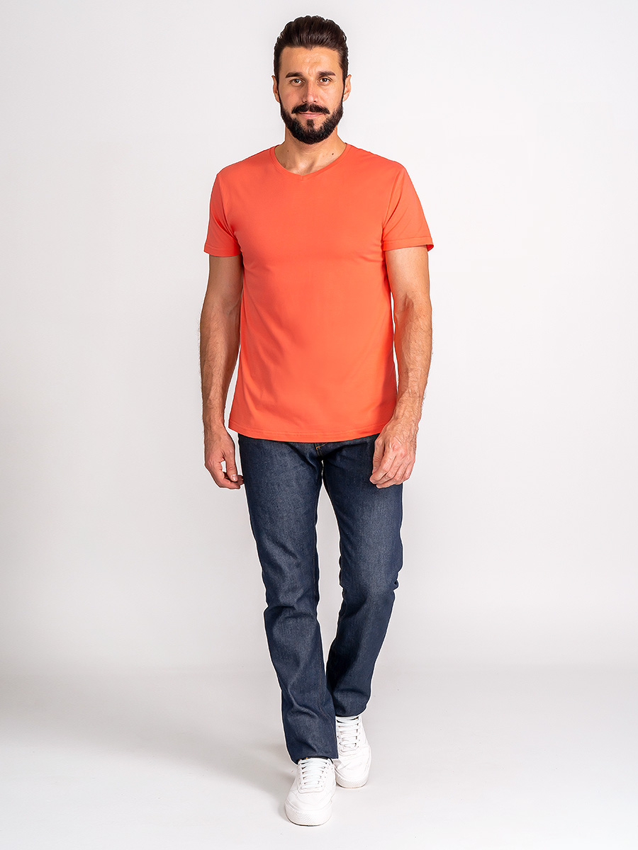 Цвет: Оранжевый Рисунок: Трикотаж..показать однотонный Состав: 100% хлопок Supreme Модель: Классическая Ворот: V-вырез Силуэт: Прямой силуэт / Сlassic fit однотонный
