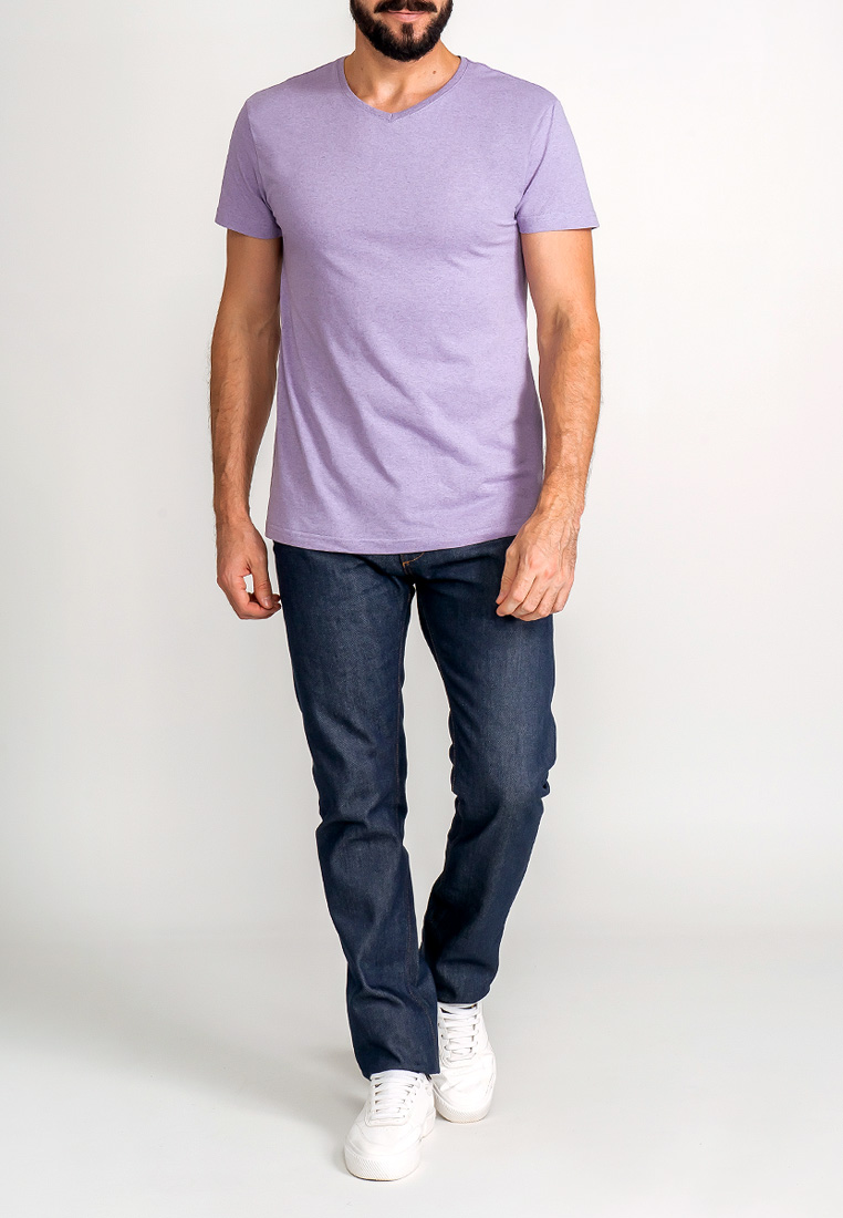 Цвет: Фиолетовый Рисунок: Трикота..показатьж однотонный меланжевый Состав: 70% хлопок 30% полиэстер Модель: Классическая Ворот: V-вырез Силуэт: Прямой силуэт / Сlassic fitж однотонный меланжевый