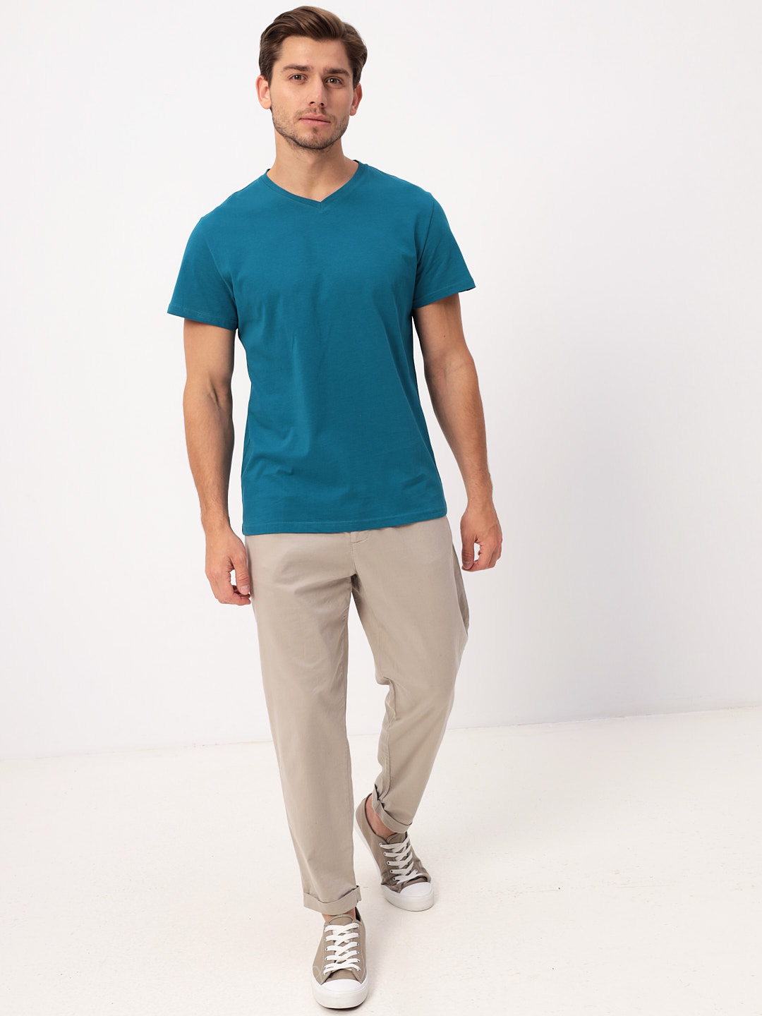 Цвет: Бирюзовый Рисунок: Трикотаж..показать однотонный Состав: 100% хлопок Supreme Модель: Классическая Ворот: V-вырез Силуэт: Прямой силуэт / Сlassic fit51997ebe-a175-11e9-8166-c80aa904729b однотонный