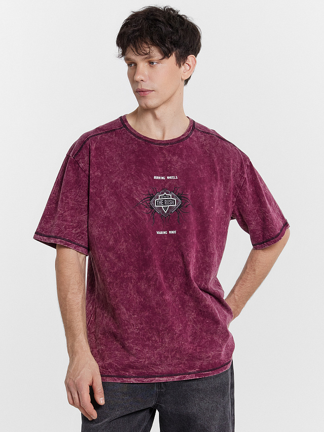 Футболка мужская красная с обработкой эйсид с надписью "The rush"