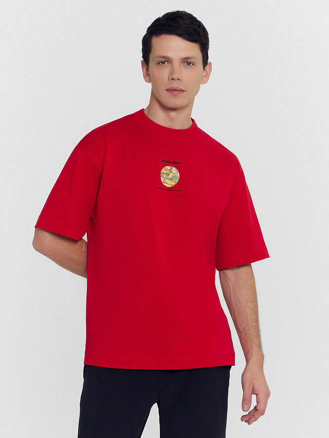 Мужская футболка свободного кроя с круглой горловиной и спущенной линией плеча обеспечит максимальный комфорт в повседневной носке. Изделие выполнено из нежной кулирки, которая представляет собой мягкий и дышащий хлопковый материал. Такая ткань отлично пропускает воздух и позволяет коже дышать, что особенно важно в жаркую погоду. Кулирка также известна своей прочностью и способностью сохранять форму даже после многочисленных стирок, что делает футболку долговечным элементом вашего гардероба.