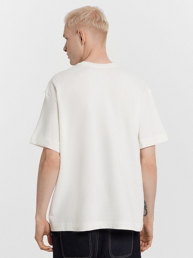 Эта мужская футболка оверсайз — отличный выбор для комфортных и стильных образов! Модель выполнена из фактурного кулирного материала, который придаёт изделию особую текстуру и обеспечивает приятные тактильные ощущения.Круглая горловина обработана обтачкой из рибаны, что повышает износостойкость и сохраняет форму даже после многократных стирок. Короткие рукава и спущенная линия плеча добавляют расслабленный, современный акцент, делая футболку универсальным элементом гардероба. Нижние срезы футболки и рукавов обработаны швом вподгибку, обеспечивая аккуратность и долговечность модели. Отличный вариант для повседневных образов, который легко сочетается с джинсами, спортивными брюками или шортами, создавая стильные и удобные сочетания!