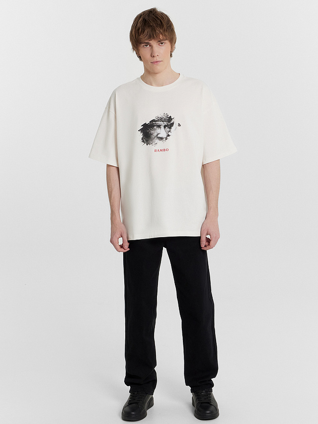 Футболка мужская кремовая с принтом и надписью "Rambo"