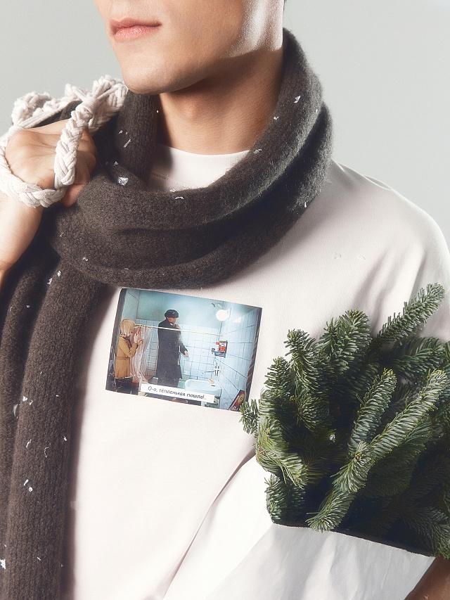 Мужская футболка оверсайз из коллекции Mark Formelle х Мосфильм, посвященной легендарному советскому фильму «Ирония судьбы, или С лёгким паром!». Эта модель выполнена из высококачественного и износостойкого материала – кулирка, который не только приятен на ощупь, но и прекрасно выглядит. Горловина округлой формы обработана обтачкой из рибаны, что придает дополнительный комфорт и долговечность изделию. А короткие рукава со спущенной линией плеча добавляют утонченности образам. Независимо от того,собираетесь ли вы на прогулку, встречу с друзьями или просто отдыхаете дома, эта футболка станет вашим надежным спутником! Такая футболка станет отличным вариантом подарка для себя или близких на Новый год и Рождество, добавляющий праздничное настроение и комфорт в домашнюю атмосферу.