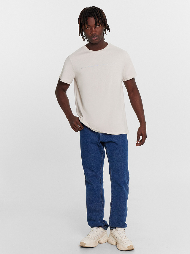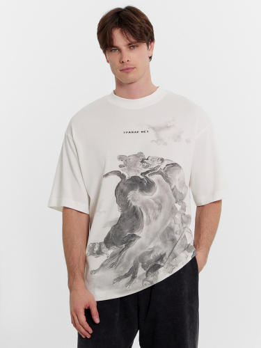 ФУТБОЛКА МУЖСКАЯ КРЕМОВАЯ С ПРИНТОМ В ВИДЕ НАДПИСИ