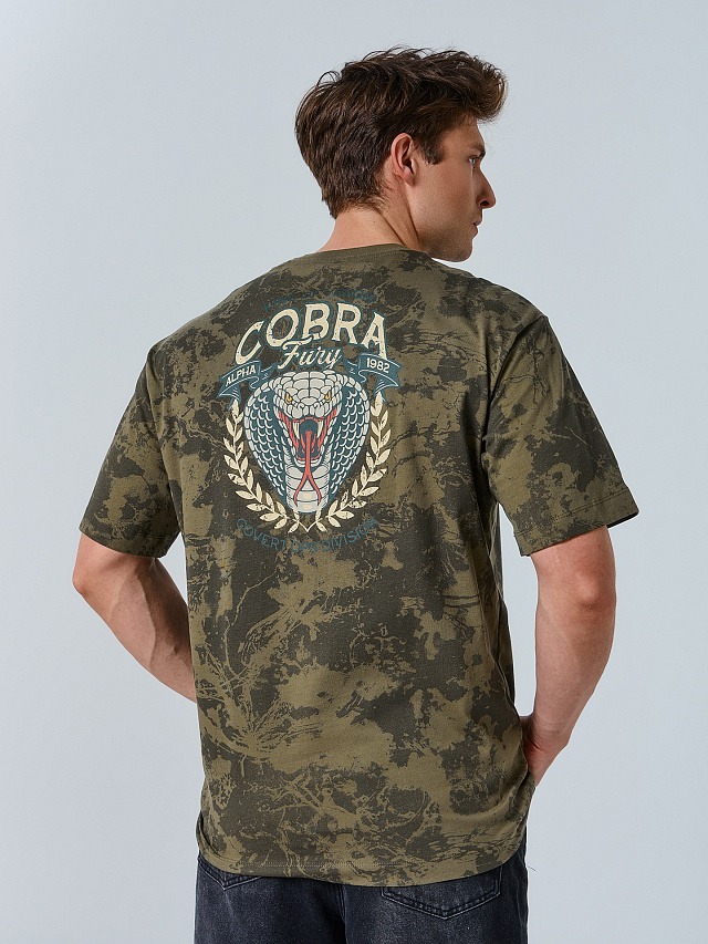 Свободный крой со спущенным плечом обеспечивает идеальную свободу движений. Стилизованная надпись «Ярость кобры» добавляет образу харизматичности и внутренней силы. Плотная, приятно структурированная ткань отлично держит форму, не вытягивается и обеспечивает комфорт в любую погоду.