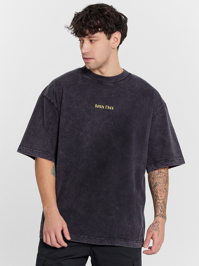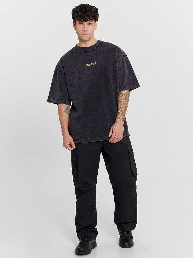Футболка мужская оверсайз черная с обработкой эйсид