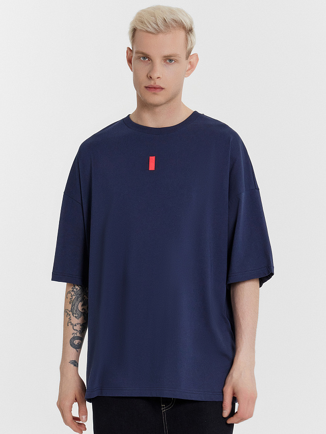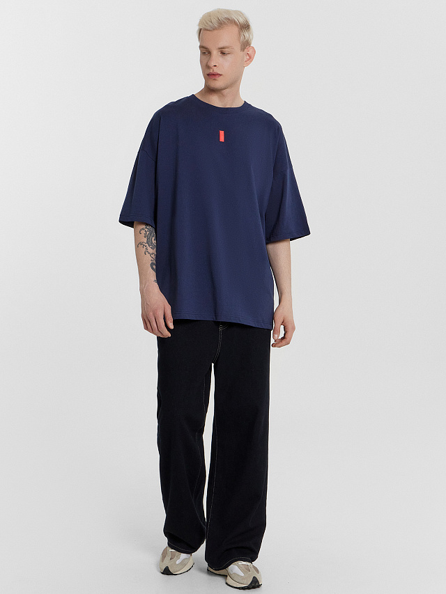 Футболка мужская оверсайз синяя с принтом