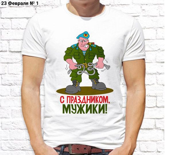 Футболка мужская с принтом белая "23 Февраля № 1"
