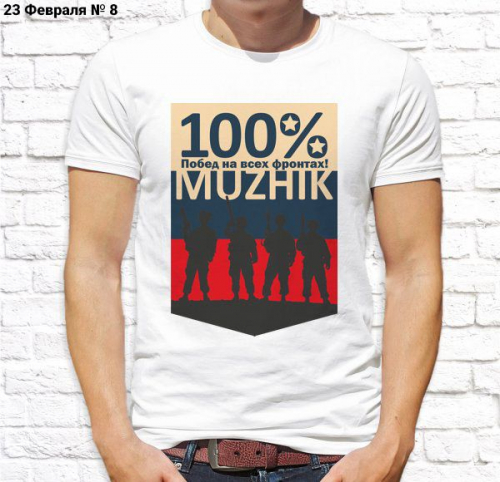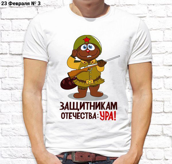 Футболка мужская с принтом белая "23 Февраля № 3"