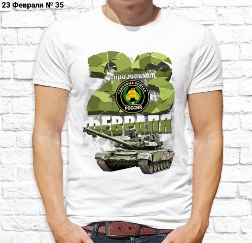 Футболка мужская с принтом белая "23 Февраля № 38"