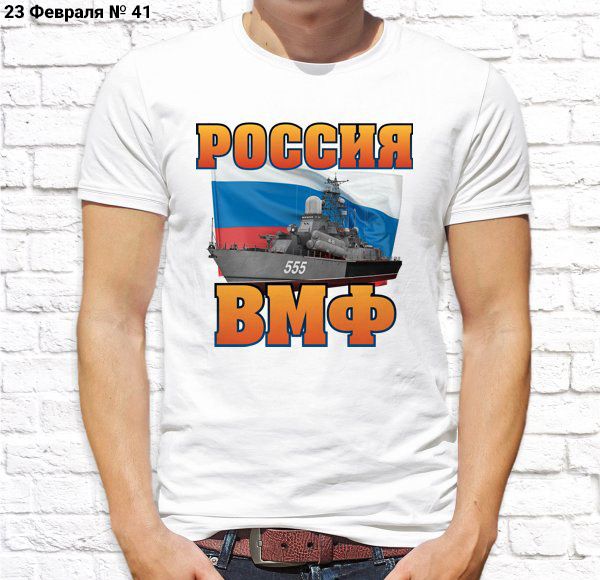 Футболка мужская с принтом белая "23 Февраля № 41"