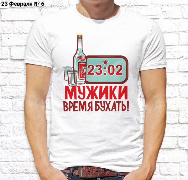 Футболка мужская с принтом белая "23 Февраля № 6"