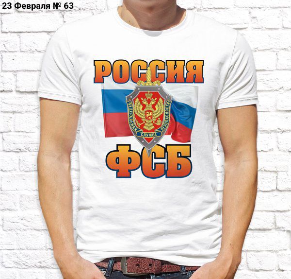 Футболка мужская с принтом белая "23 Февраля № 63"