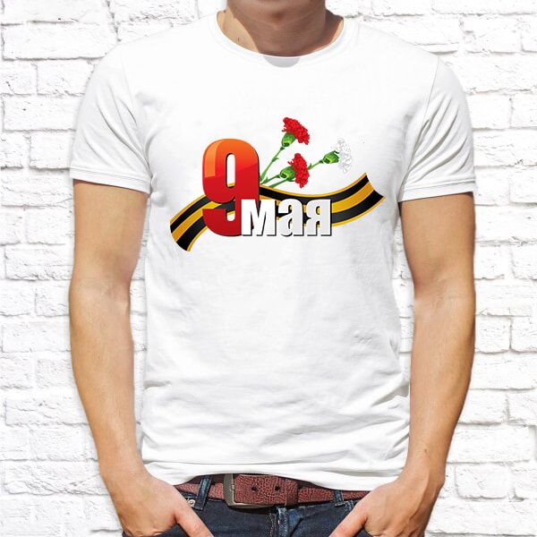 Футболка мужская с принтом белая 9 Мая - 48