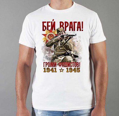 Футболка мужская с принтом белая "Бей врага!"