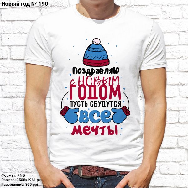 Футболка мужская с принтом белая "Новый год №190"