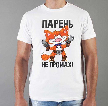 Футболка мужская с принтом белая "Парень не промах!"