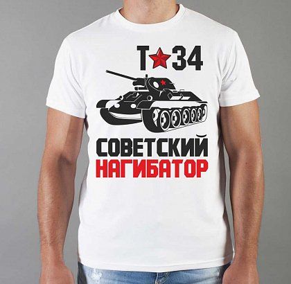 Футболка мужская с принтом белая "Т-34"
