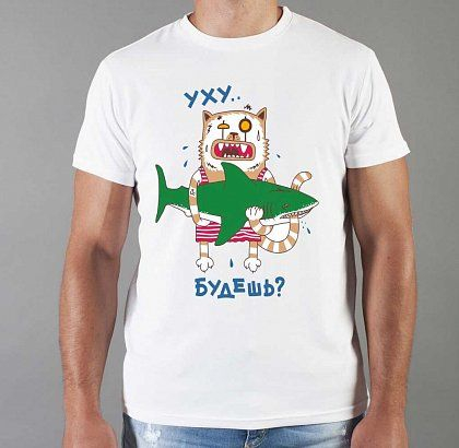 Футболка мужская с принтом белая "Уху..Будешь?"