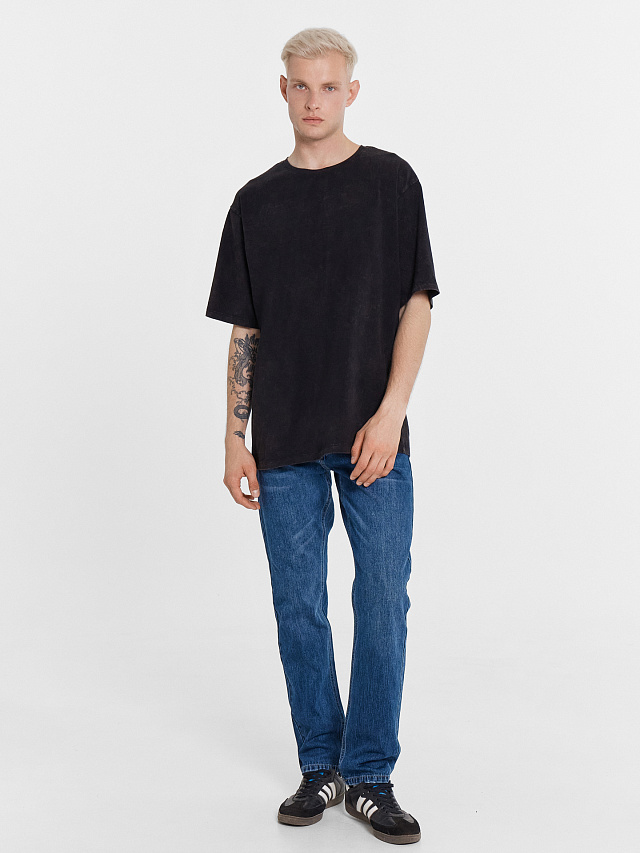 Лаконичная футболка мужская из высококачественного хлопка. Силуэт прямой, свободный. Горловина круглой формы из рибаны. Линия плеча слегка спущена, рукава короткие. Сохраняет свой цвет и качество даже после многократных стирок. Обладает хорошей устойчивостью к выцветанию и отлично держит форму. Подойдет для повседневной носки, а также для занятий спортом. Позволяет достичь идеального сбалансированного сочетания между комфортом и стилем. Эта модель — одно из уникальных изделий, которые проходят этап дополнительной обработки. Благодаря обработке "эйсид", каждая вещь отличается своим особенным и неповторимым рисунком. Рекомендуем!