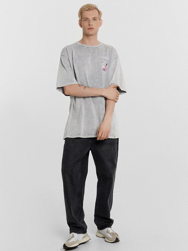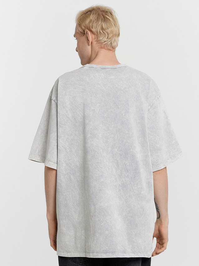 Футболка мужская серая с обработкой эйсид и принтом "Моя волна"
